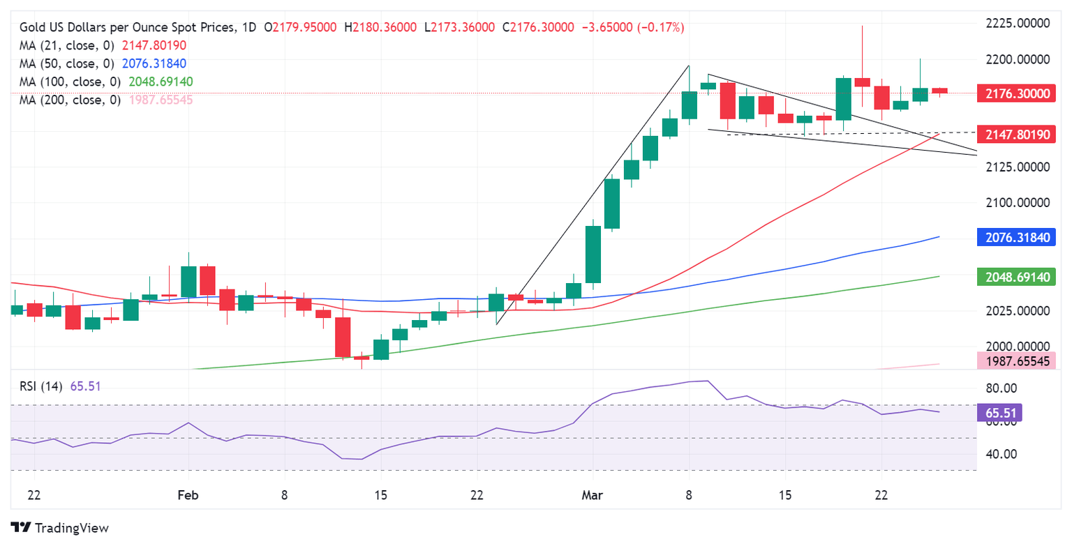 Gold price has returned to the red near $2,170 early Wednesday, notwithstanding Tuesday’s uptick to the $2,200 level. The US Dollar (USD) consolidates the previous rebound even though the US Treasury bond yields struggle amidst souring market sentiment.