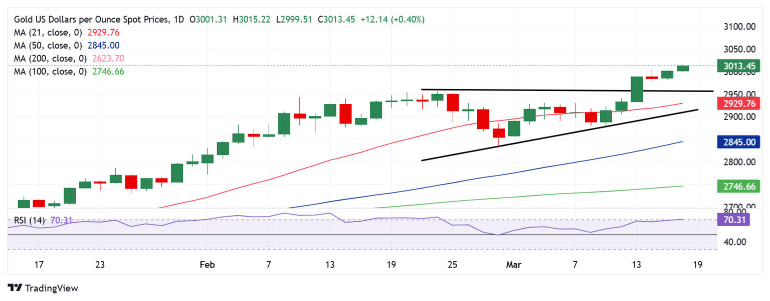 Having found acceptance above the $3,000 psychological barrier on Monday, Gold buyers now keep their sight on the $3,050 mark.