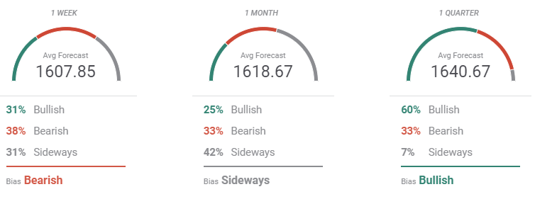 The FXStreet Forecast Poll shows that spot’s recovery may have stalled, as it is seen bearish-to-neutral in the next few weeks, although recovering ground in the three-month perspective. In the worst case, gold is seen on average at 1,607and that’s for the upcoming week.