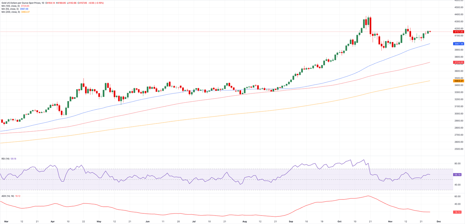 Heading into the Thanksgiving slowdown, the precious metal might just take a breather and hold its ground around the $4,150–$4,170 pocket. Liquidity usually dries up a bit as US desks switch into holiday mode, so we may see a quieter stretch where traders simply protect recent gains.