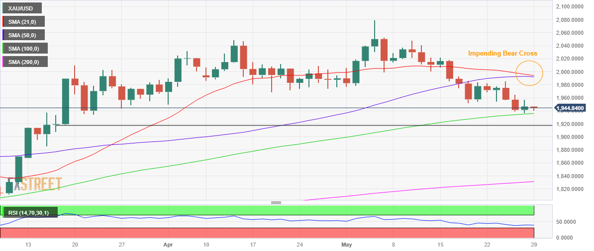 - Gold price remains vulnerable amid rising odds of a June Fed rate hike and an impending Bear Cross.