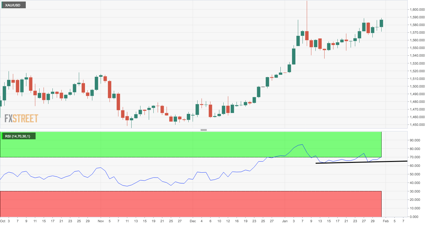 The yellow metal is currently trading at $1,585 per Oz, representing a 4.48% gain from the opening price of $1,517.70 observed on Jan. 2. That is the biggest monthly price rise since August 2019. Back then, gold had rallied by 7.65%.