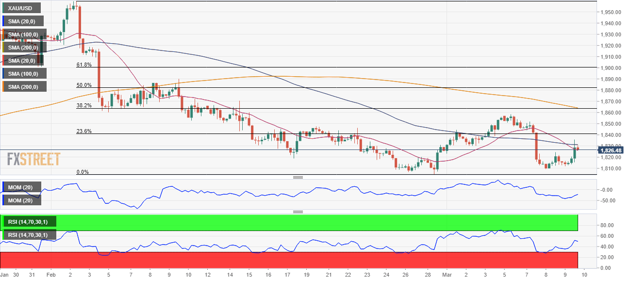 XAU/USD Current price: $1,826.41
