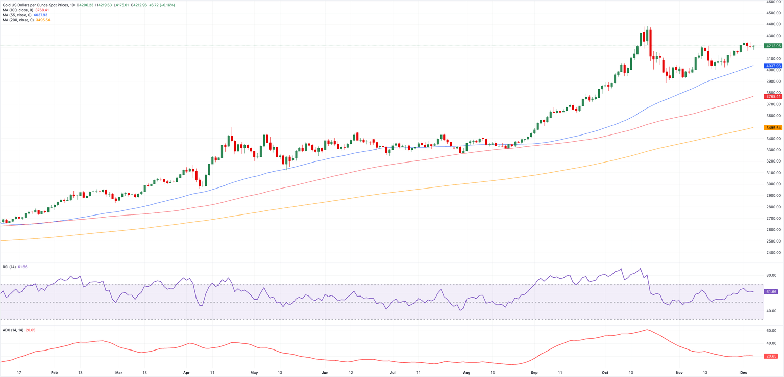 - Gold prices trade in a vacillating tone around the $4,200 mark on Thursday.