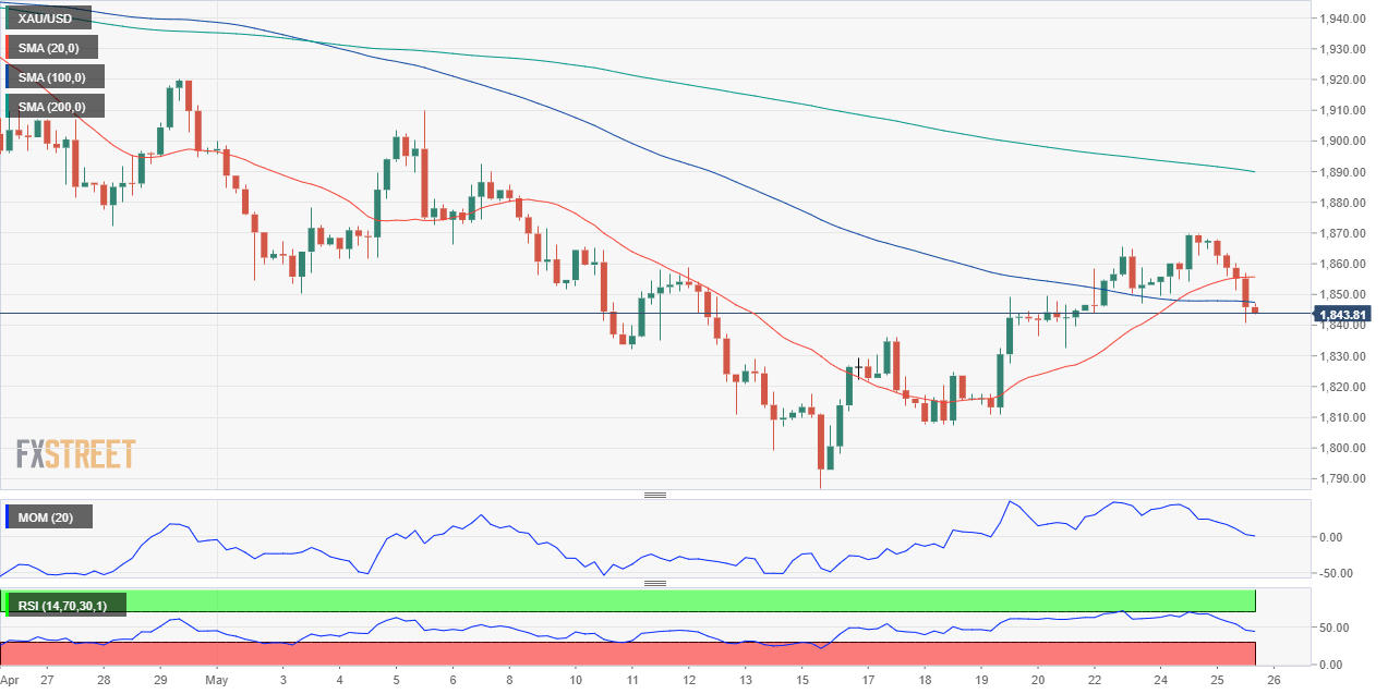 Gold price is down on Wednesday as the greenback met renewed demand. XAUUSD bottomed during the American session at $1,841.84 a troy ounce, holing nearby ahead of the FOMC Meeting Minutes. Generally speaking, investors remain cautious amid signs of slowing economic growth and doubts the US Federal Reserve will be able to tame inflation.