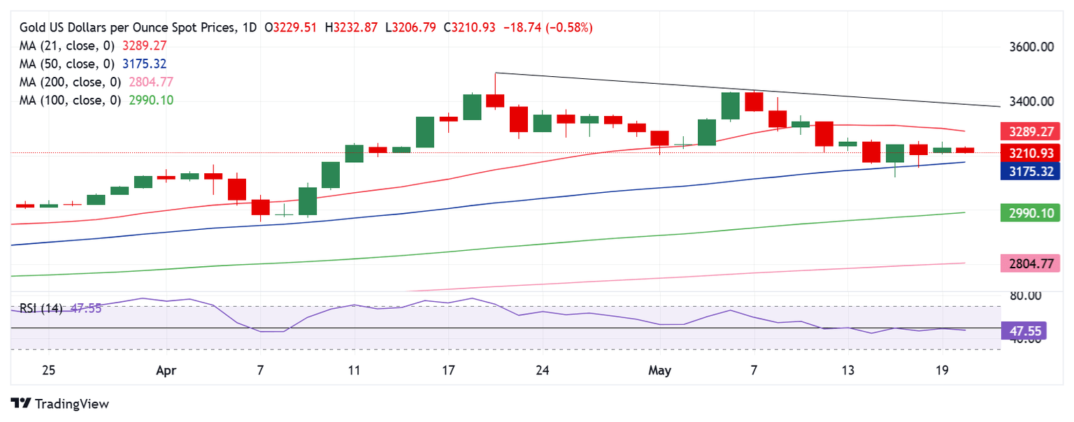 Technically, Gold price remains confined in a range, with the upside capped by the 21-day Simple Moving Average (SMA) at $3,289 while buyers continue to find support at the 50-day SMA at $3,175.