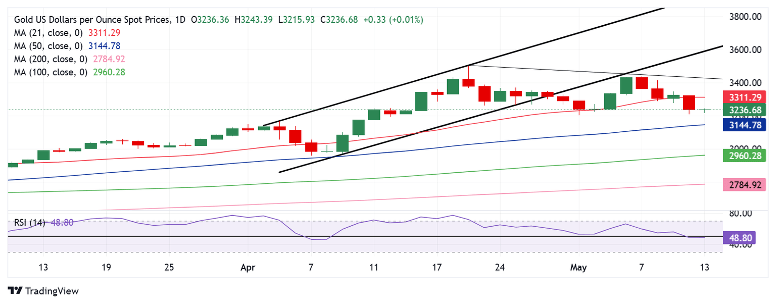 In case the US CPI data surprises to the downside, Gold price could recapture the 21-day SMA support-turned-resistance, now at $3,311. Acceptance above that level will call for a test of the falling trendline resistance at $3,430, where the intermittent resistance aligns.