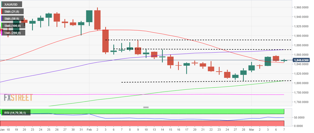 Gold Price Forecast: Will XAU/USD defend 21 DMA at $1,843 on Fed Chair Powell?