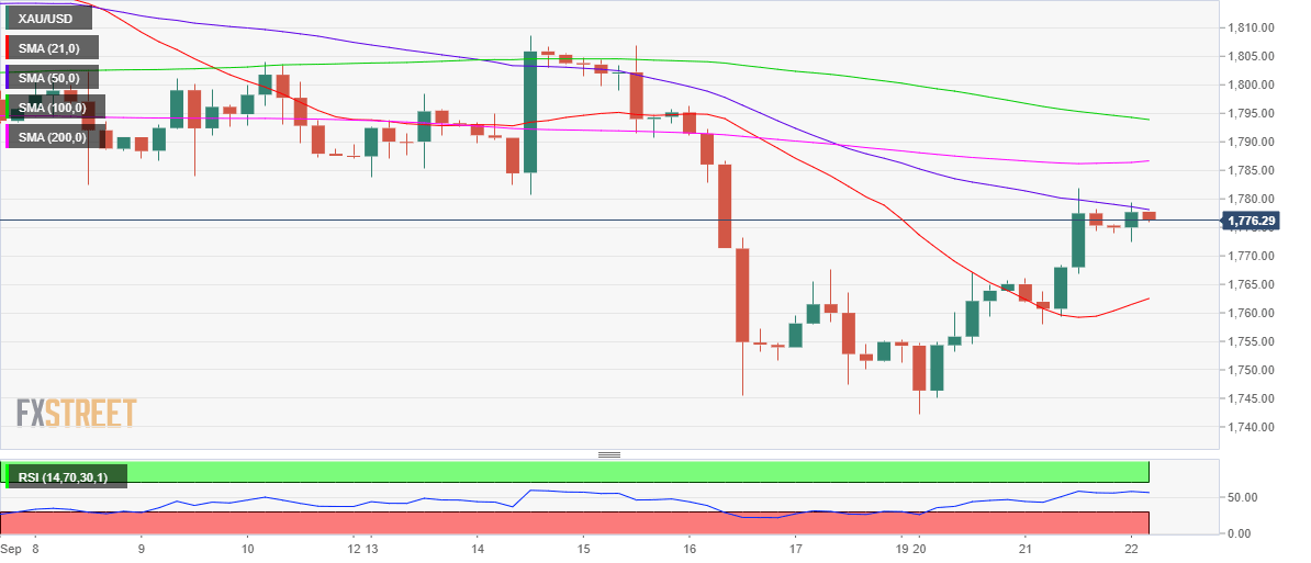 Gold price is challenging key 50-Simple Moving Average (SMA) resistance at $1778 on its recovery journey.