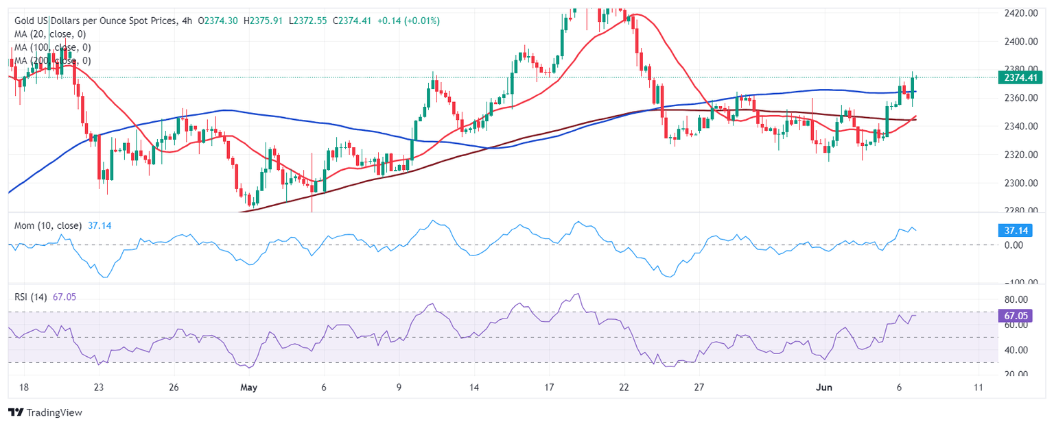 Spot Gold trades with a bullish bias on Thursday, reaching fresh two-week highs just below the $2,380 mark. The bright metal accelerated north early in the American session after the European Central Bank (ECB) monetary policy announcement and United States (US) employment data.