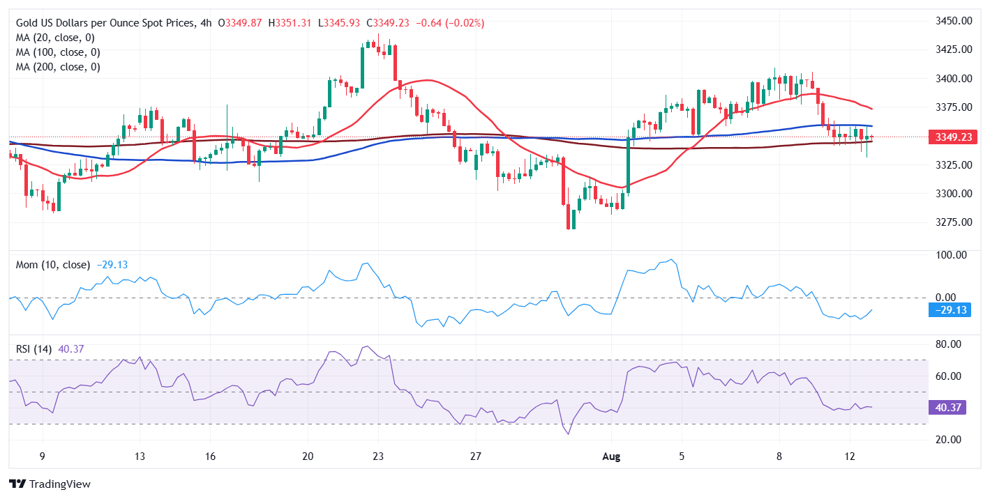 Gold trades with a softer tone on Tuesday, falling to a fresh one-week low of $3,331.12 in the American session. The US Dollar (USD) gathered momentum following the release of United States (US) data, finding additional legs in political headlines.
