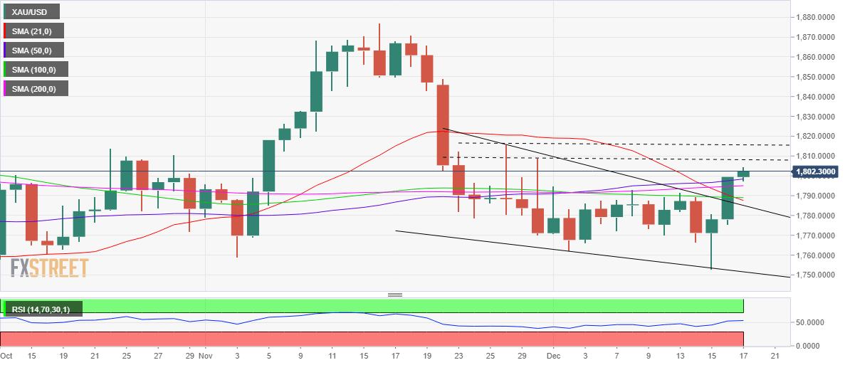Gold Price Forecast: XAU/USD awaits acceptance above $1,808 for additional upside