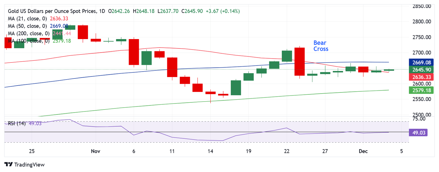 - Technically, Gold price regains the 21-day SMA at $2,636, but the daily RSI flatlines near 50.