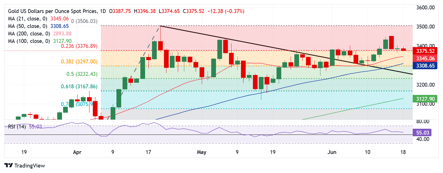 Gold price is back in the red early Wednesday, moving away from the $3,400 threshold amid stabilizing risk sentiment. All eyes now remain on the US Federal Reserve (Fed) policy announcements amid lingering Israel-Iran geopolitical tensions.