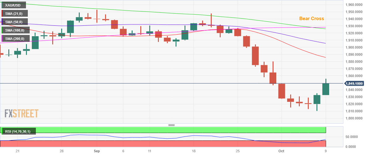 Gold Price Forecast: XAU/USD battles $1,850 on road to recovery amid Middle East risks