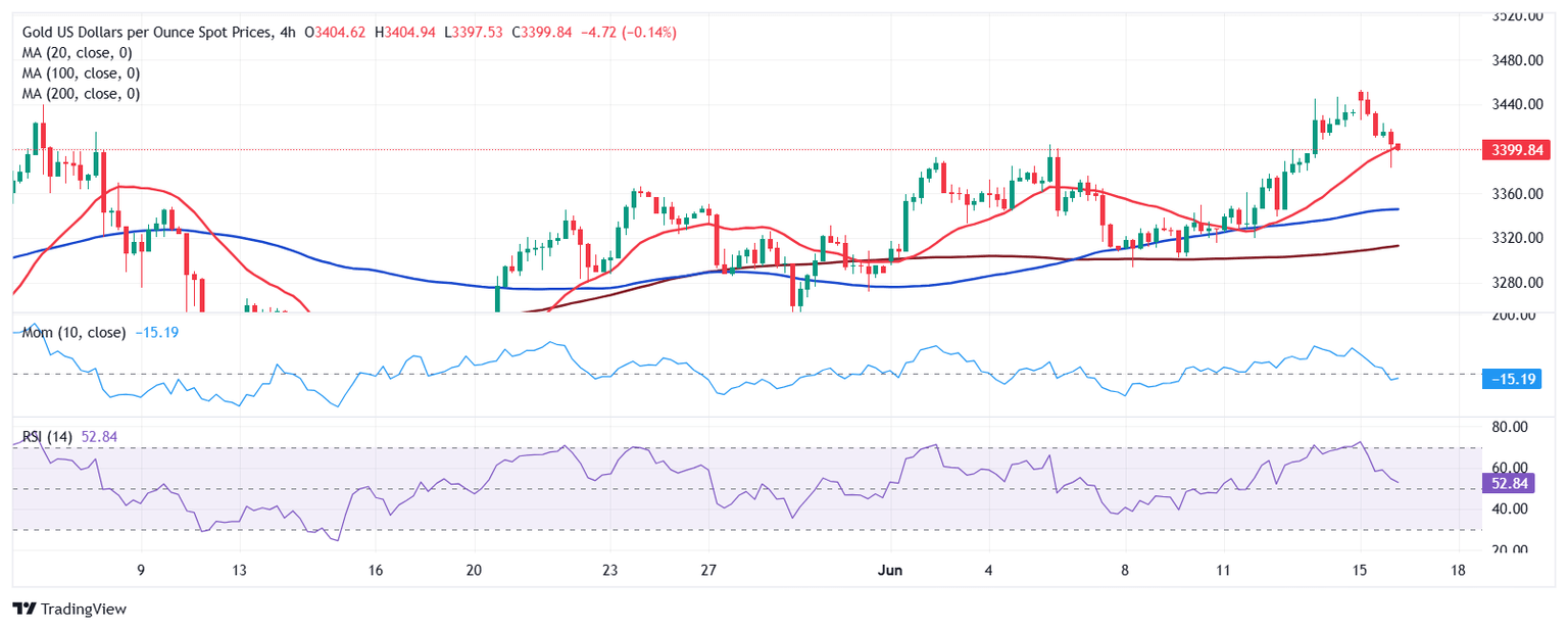 Spot Gold peaked at $3,452.41 at the weekly opening, retreating towards the current $3,400 price zone throughout the day. The bright metal benefited from weekend headlines spurring risk aversion amid an escalating conflict between Israel and Iran. Middle East tensions continue, but the mood somehow improved, weighing on the bright metal.