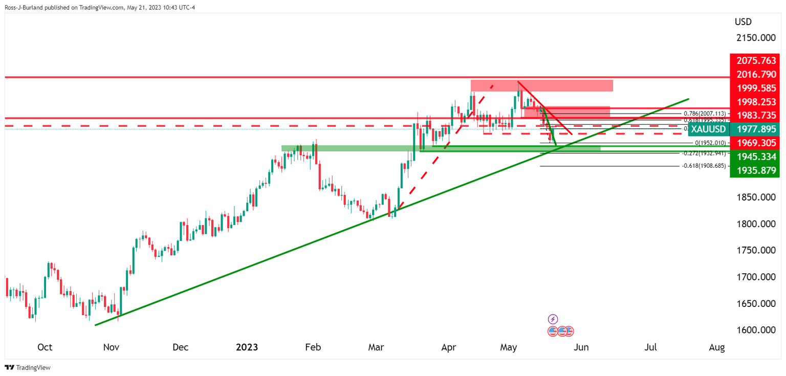 The Gold price has taken out longs towards the major trendline support that would be expected to hold on initial tests.