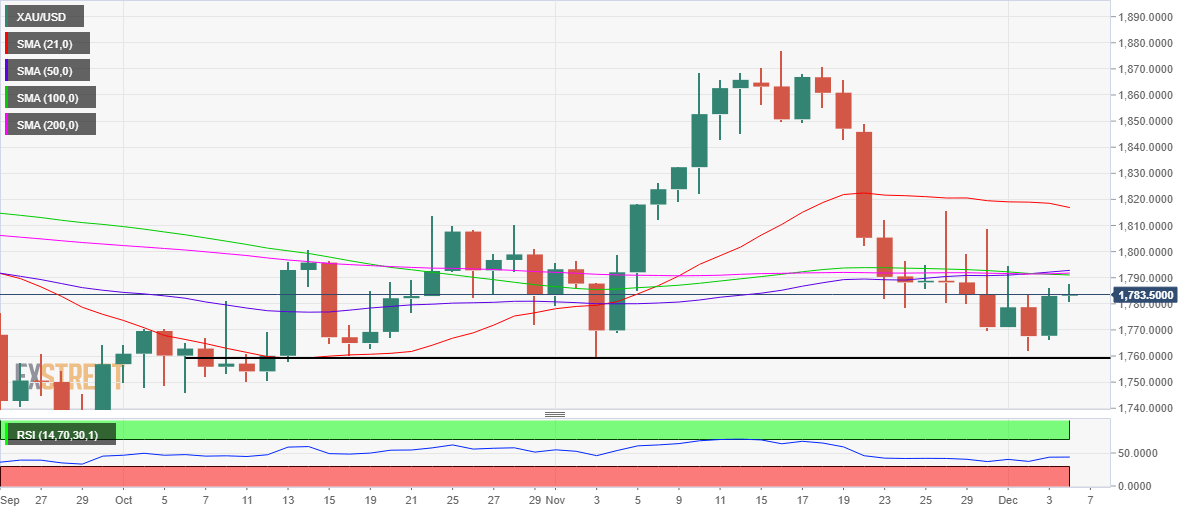Gold price staged an impressive turnaround on the final trading day of the week, rebounding nearly $20 from near four-week troughs of $1,762 reached last Thursday. The move was largely seen as chart-driven, with a technical bounce seen after the recent downward spiral. On the fundamental front, the all-important US Nonfarm Payrolls rose by 210K in November vs. +550K expected. The US dollar whipsawed in an initial reaction to the US employment data before eventually returning to the lower bound, as the Treasury yields dived.