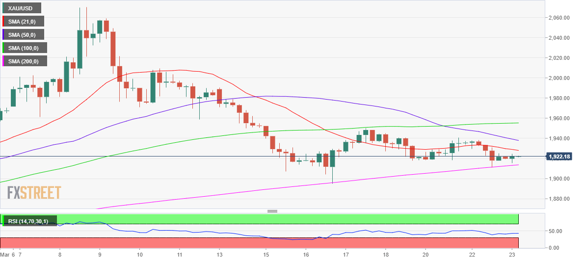 Gold price is defending the critical upward-sloping 200-Simple Moving Average (DMA) at $1,914 on the four-hour chart.