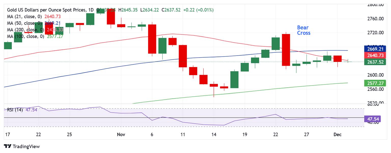 - Technically, Gold price stays below the 21-day SMA at $2,641 with a bearish daily RSI.