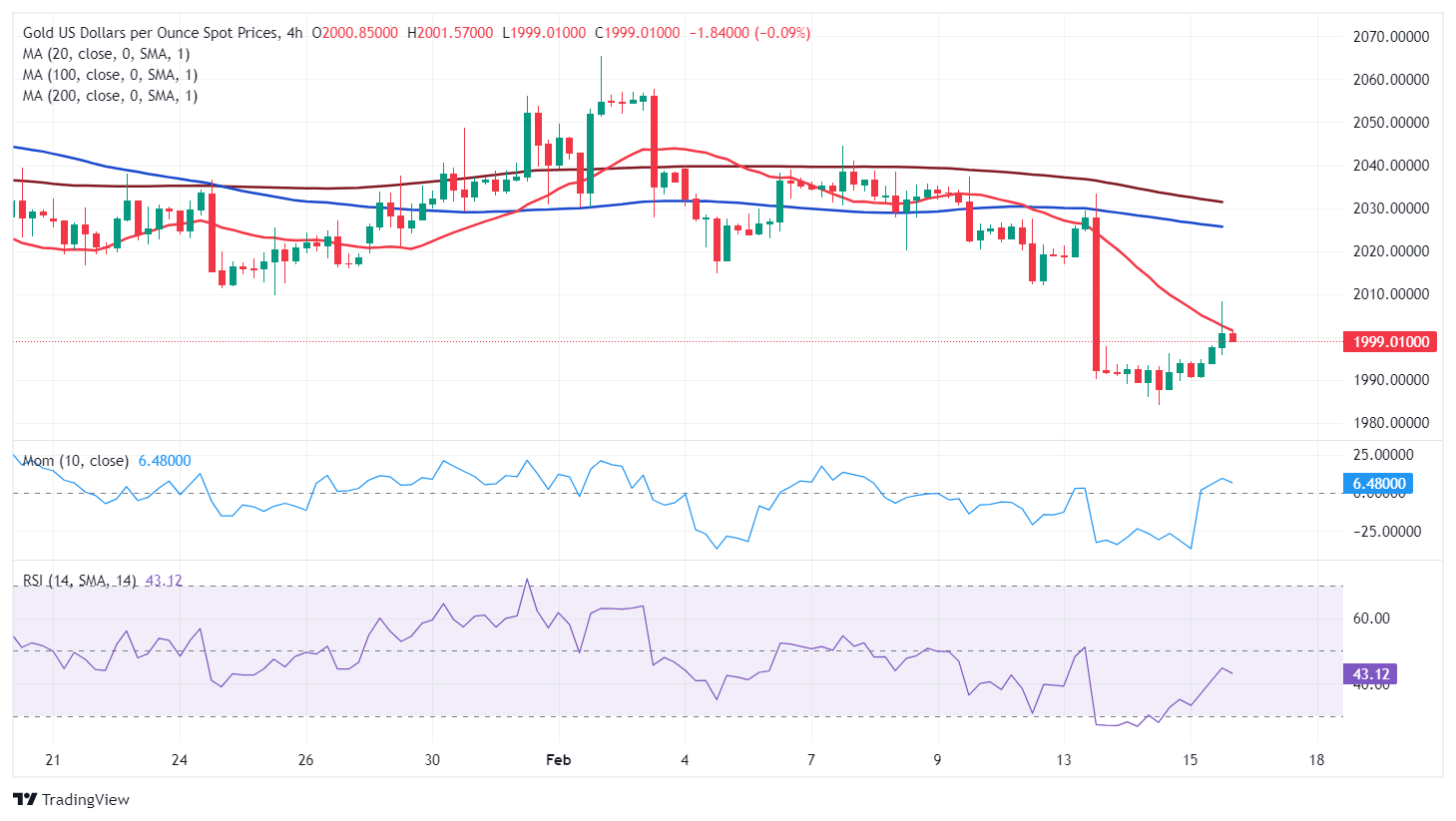 - XAU/USD is losing its positive momentum and struggles to retain the $2,000 mark.