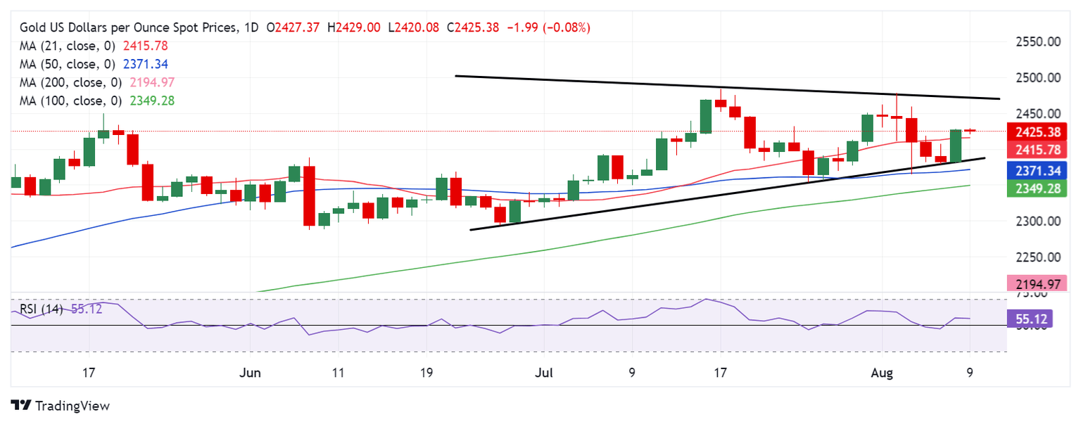 Adding credence to the bullish potential, Gold buyers recaptured the 21-day Simple Moving Average (SMA) support-turned-resistance at $2,415 on a daily closing basis.