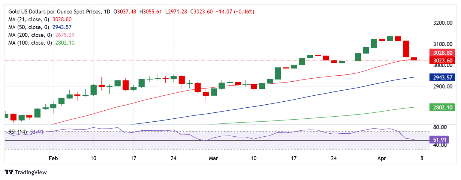 (This story was corrected on April 6 at 05:30 GMT to say in the first bullet that "Gold price finds its feet above $3,000 after hitting one-month lows early Monday." Also, "the record high of $3,168," not $3,068.)