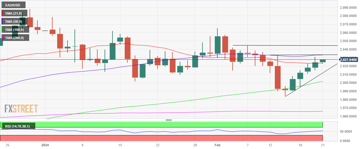 Gold price finally yielded a daily closing above the 21-day Simple Moving Average (SMA), now at $2,023, on Tuesday.