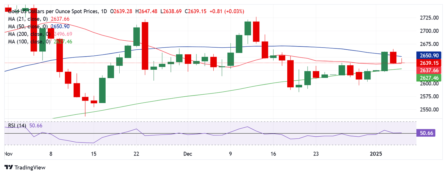 Meanwhile, Gold price defends the 21-day Simple Moving Average (SMA) at $2,638 after failing to sustain above the 50-day SMA of $2,651 on Friday.