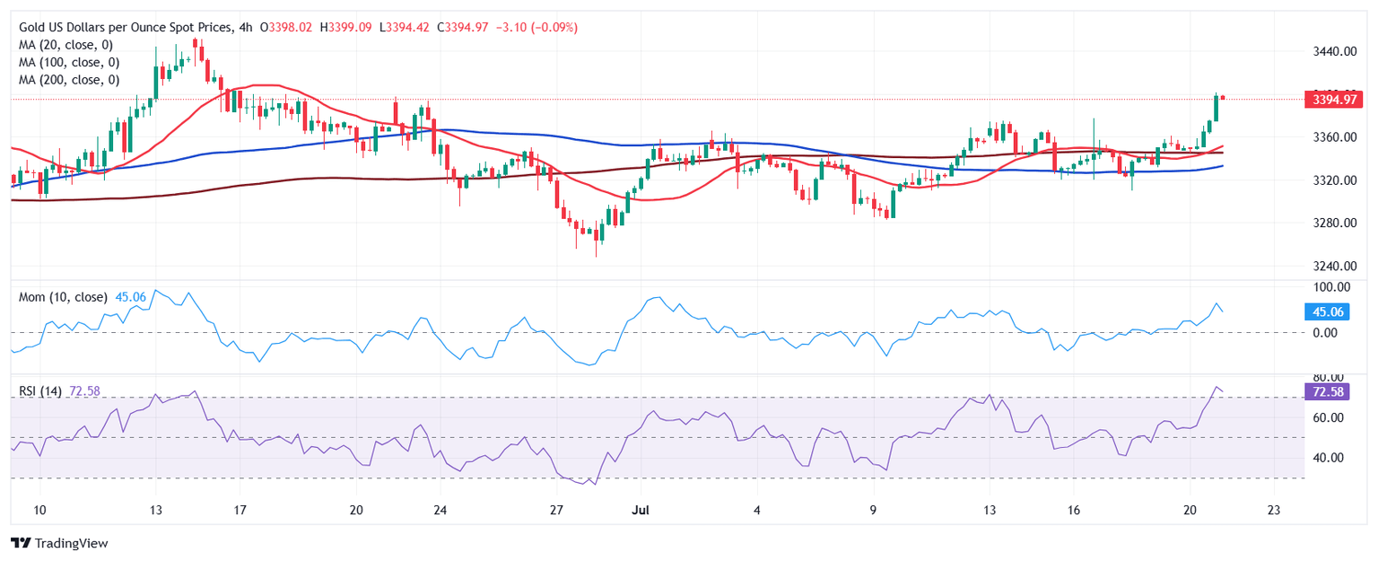 - XAU/USD aims to extend its gains beyond the $3,400 in the near term.