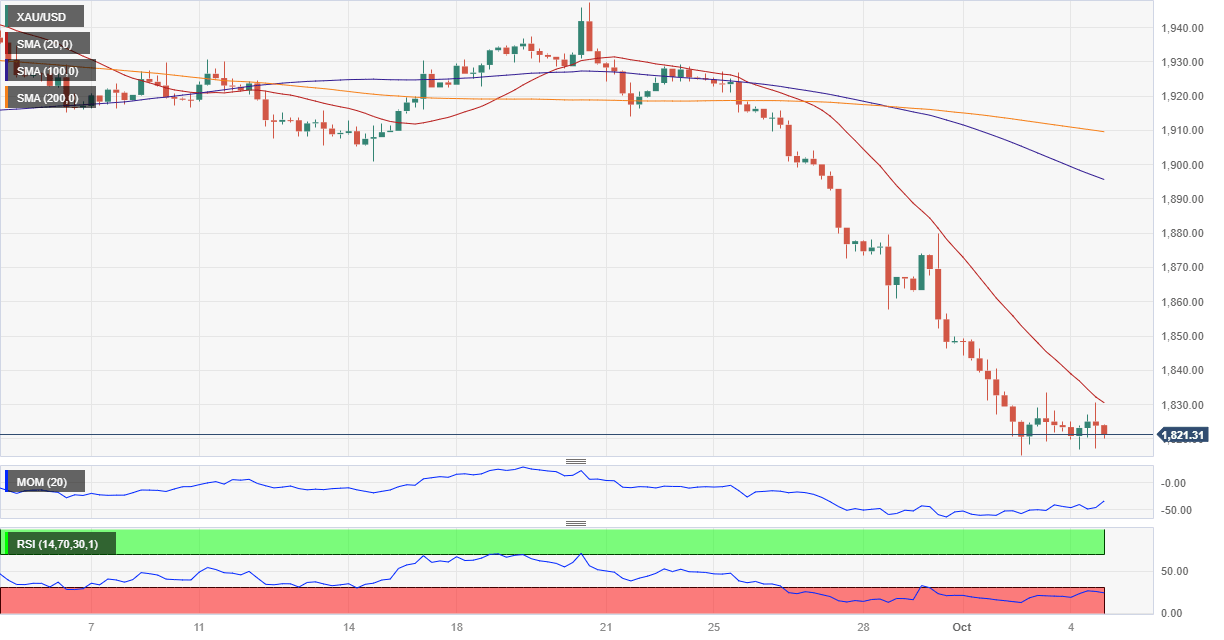 XAU/USD Current price: $1,821.36