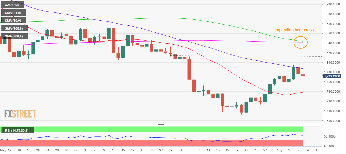 - Gold price rejection at $1,795 recalls sellers, with eyes on $1,750 support again.