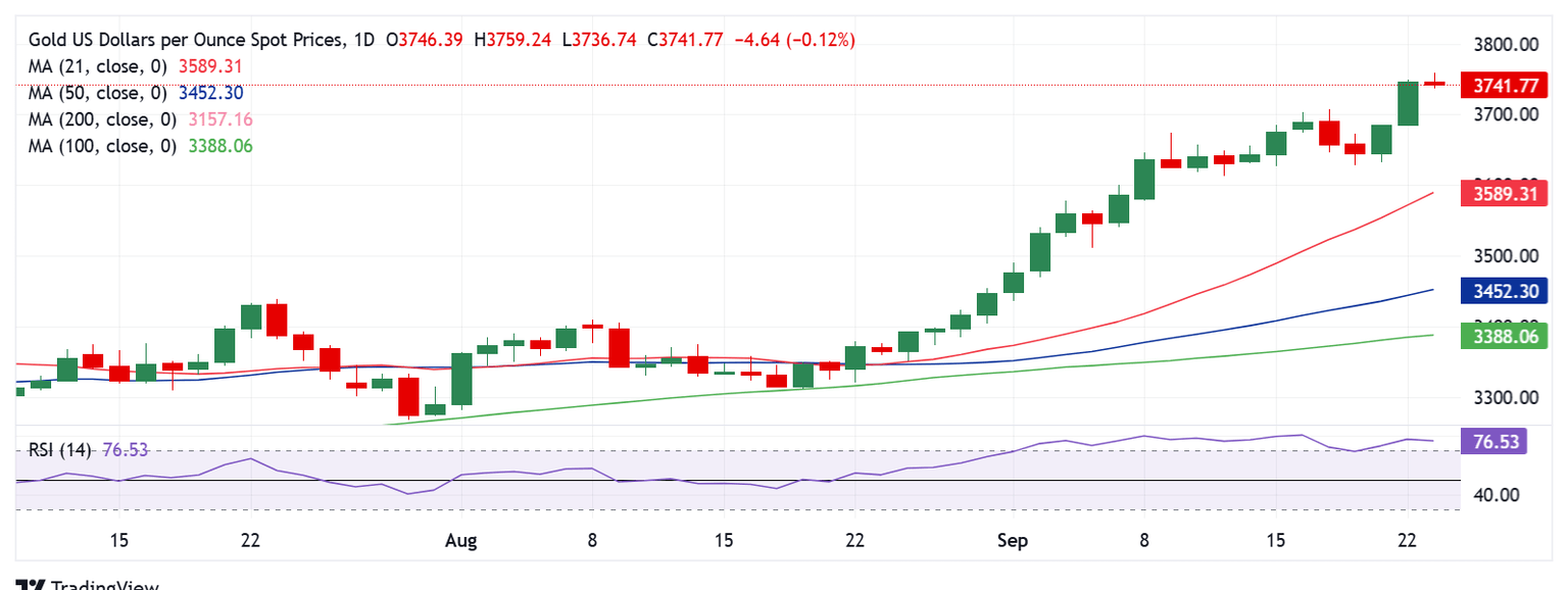Conversely, buyers need acceptance above the $3,750 region to extend the record rally toward the $3,800 round level.