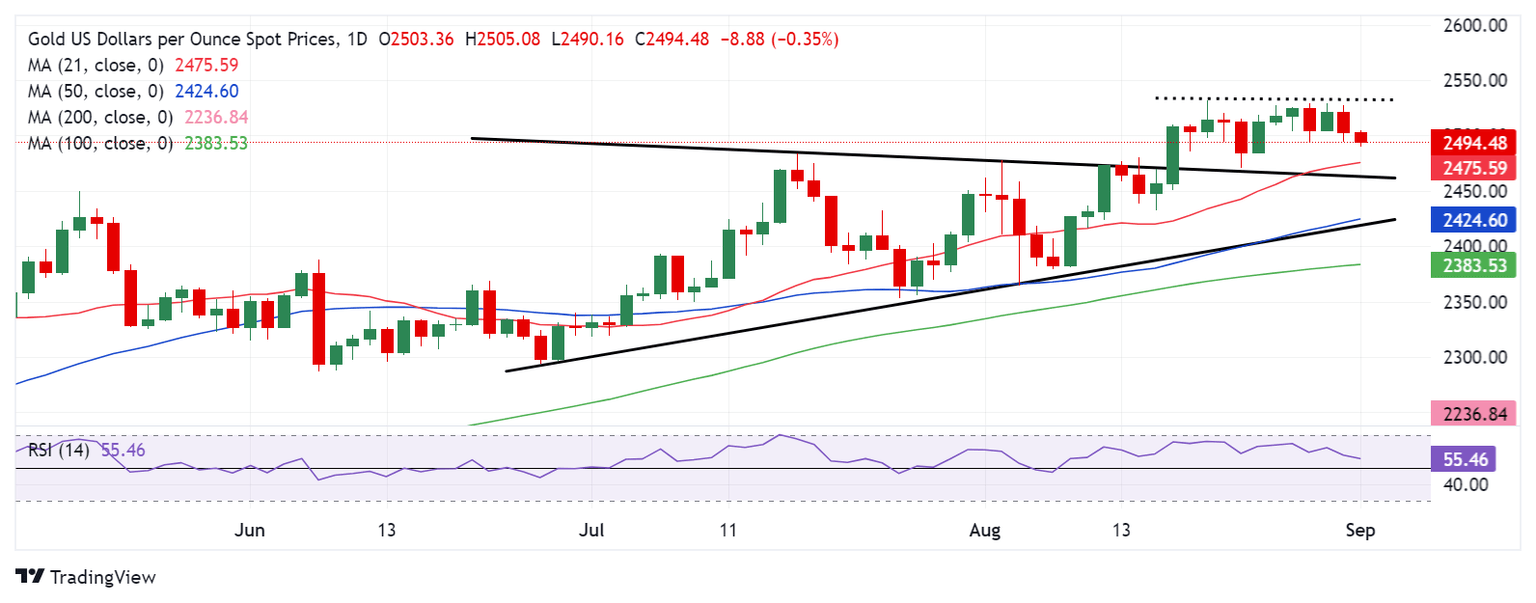 Gold price languishes in six-day lows below $2,500 early Monday, extending the previous week’s downtrend following the constant rejection near $2,530 on Thursday.