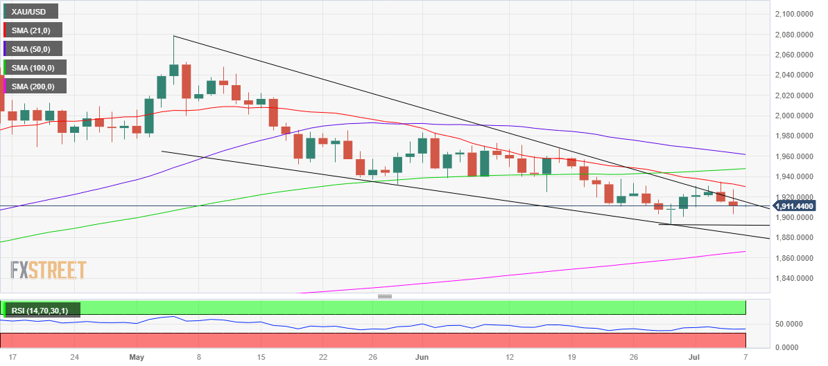 Gold price is licking its wounds while holding above the $1,900 threshold on the final trading day of the week. Traders eagerly await the all-important United States Nonfarm Payrolls data for placing fresh directional bets on Gold price.