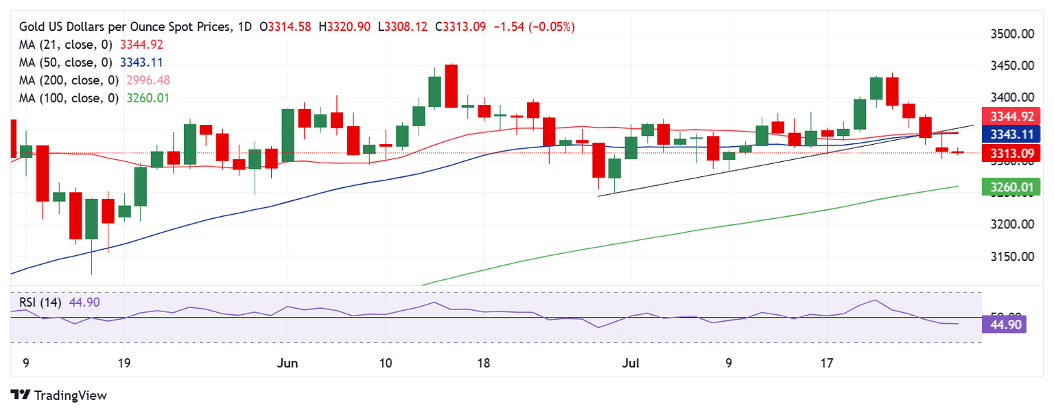 Gold price could retest the three-week lows of $3,302, below which the July 9 low of $3,283 will be tested.