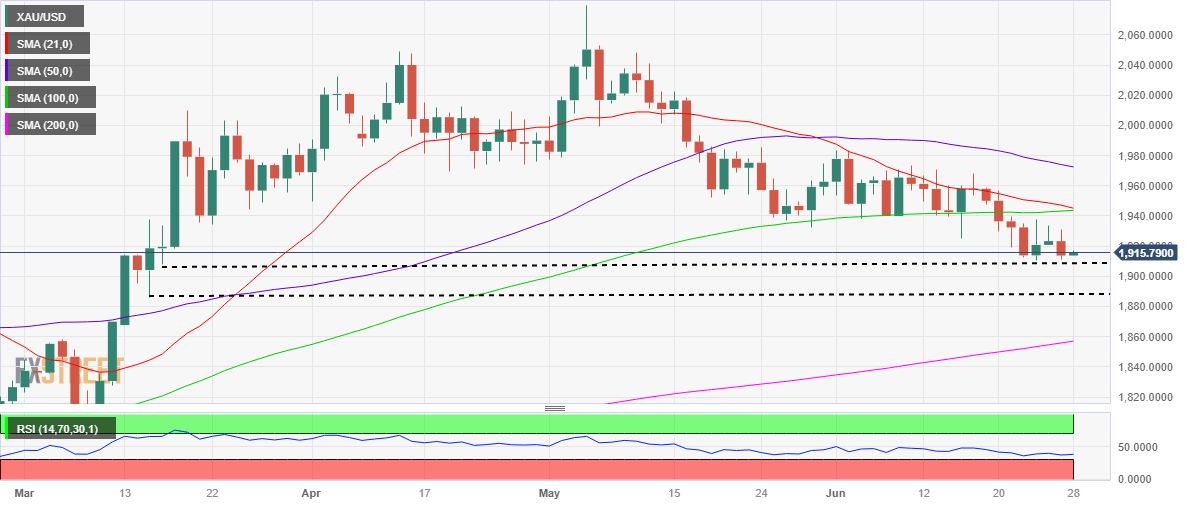 Gold price nursing losses while languishing in three-month lows near the 1,910 level early Wednesday, as the United States Dollar (USD) is looking to build on the previous rebound amid an uptick in the US Treasury bond yields and a mixed market mood. Investors are trading with caution ahead of a slew of speeches from Chiefs of major global central banks at the European Central Bank (ECB) Forum on Central Banking in Sintra.