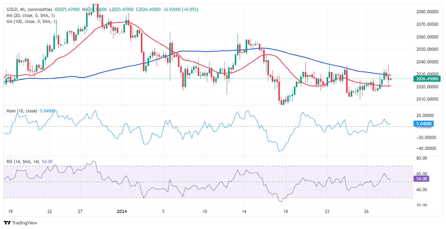 Gold price gapped higher at the weekly opening, with XAU/USD advancing up to $2,037.46 in the European session, as the US Dollar started the week with a soft tone. The latter, however, recovered at the beginning of the American session, with the pair now trading barely up on a daily basis.