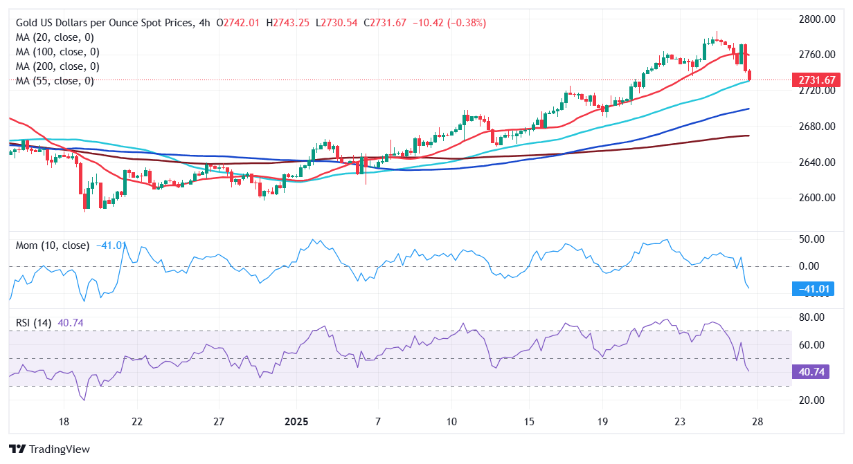 Spot Gold is under strong selling pressure at the beginning of the week, trading around the $2,730 mark in the American session. The bright metal was unable to advance against a battered US Dollar (USD) despite a dismal market mood.