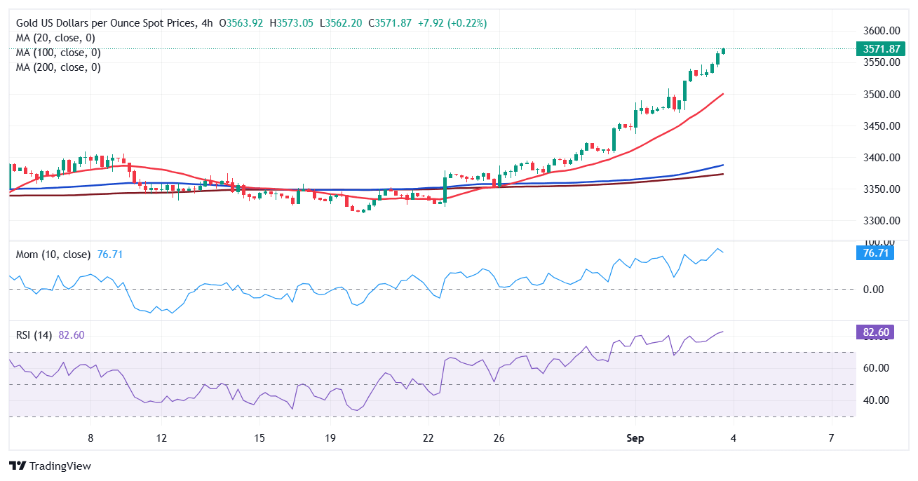 Gold Price Forecast: XAU/USD extends record run beyond $3,570