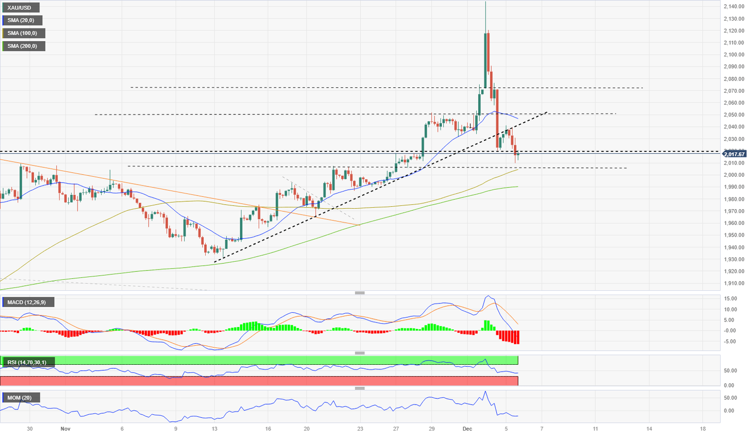 Gold Price Forecast: XAU/USD extends slide, more pressure seen under $2,010