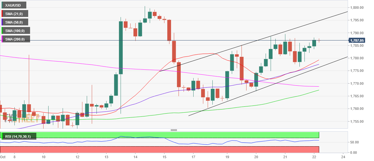 Gold price reached a four-day high at $1789 in the Asian trades and went on to consolidate the three-day advance all through the day, ending Thursday marginally higher at $1783. The two-way movements in gold price were mainly driven by the price action in the US dollar and Treasury yields price action that has been the underlying key catalysts so far this week. Resurfacing concerns over a potential default of the indebted China Evergrande Group combined with escalating inflationary fears dampened the investors’ sentiment. Mixed European corporate earnings reports added to the dour mood, triggered a rebound in the safe-haven dollar while putting a lid on gold’s upside. The near-record high close on Wall Street indices and hawkish Fed’s expectations also curbed gold bulls’ enthusiasm.