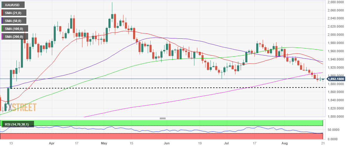 The immediate support is seen at the five-month low of $1,885, below which a test of the $1,870 static support cannot be ruled out.