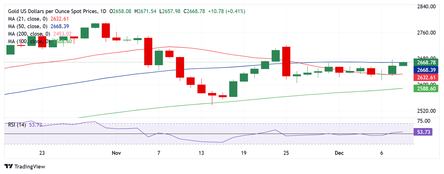 Gold price is now attempting to break the recent range to the north, battling with the key 50-day Simple Moving Average (SMA) at $2,668.