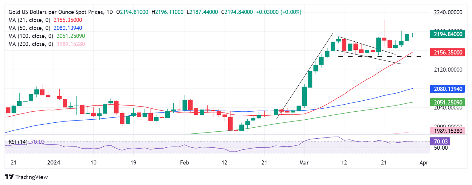 Gold Price Forecast: XAU/USD eyes daily close above $2,200 for a sustained uptrend