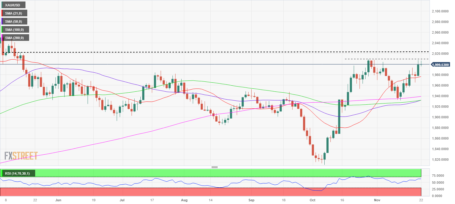 Gold price is trying hard to sustain the previous bullish momentum early Wednesday, trading around the $2,000 barrier, awaiting a fresh batch of key US economic data releases for fresh hints on the US Federal Reserve’s (Fed) interest rate outlook.