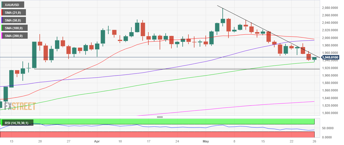 - Gold price is close to its critical 100-Daily Moving Average support at $1,935.
