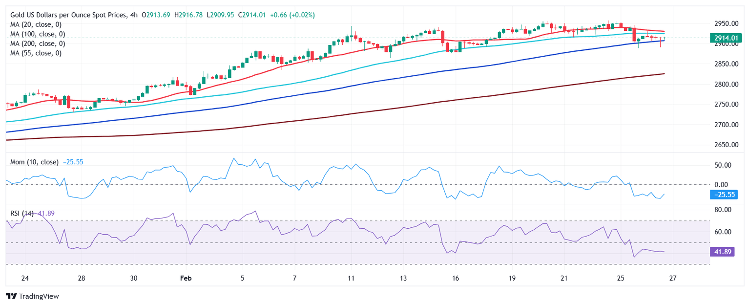 The near-term picture, however, shows a limited bullish potential. In the 4-hour chart, XAU/USD recovered twice from intraday dips below a bullish 100 SMA but remains below a mildly bearish 20 SMA. Finally, technical indicators remain below their midlines, although recovering modestly, not enough to anticipate additional gains. Gold needs to run past 2,936.20 to recover its near-term bullish poise.