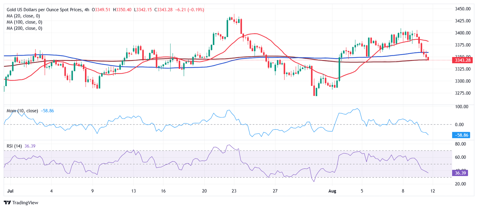 - XAU/USD pressures intraday lows in the $3,340 area, aiming to extend its slide.