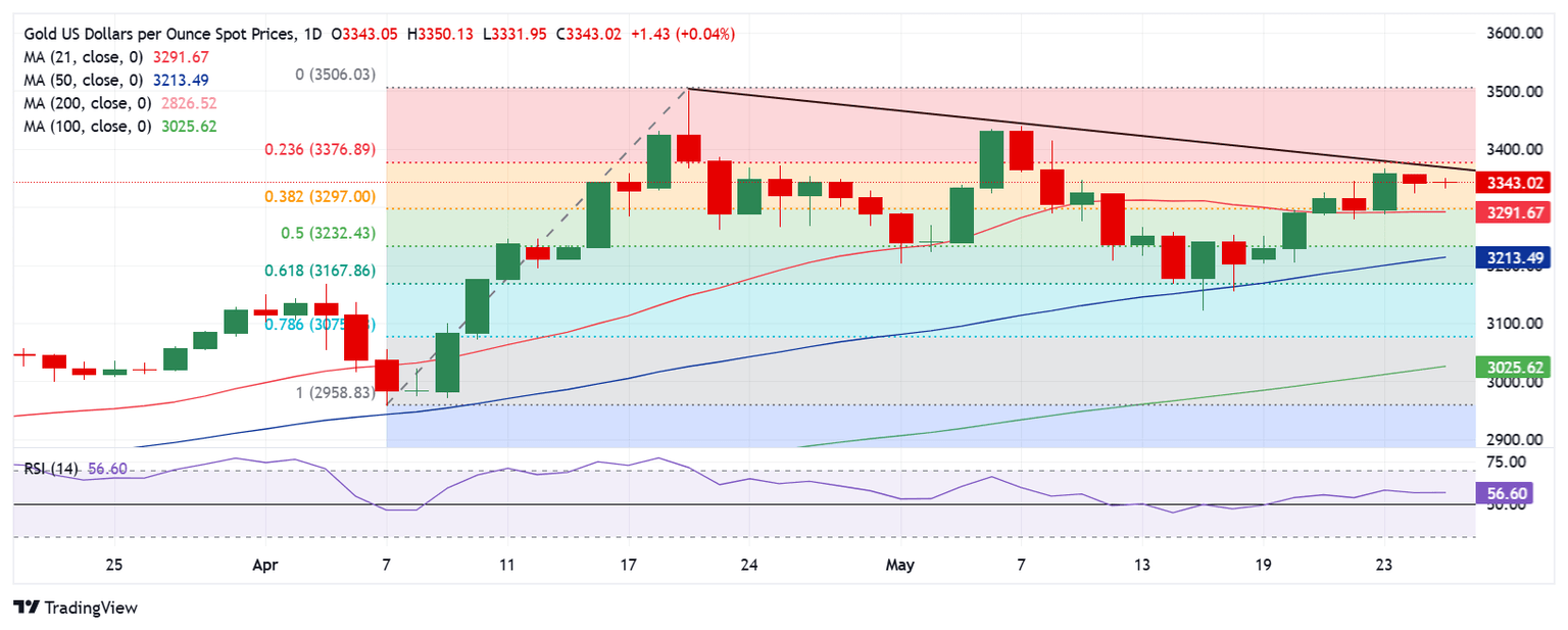 - Gold price consolidates below $3,350 early Tuesday; buying pressure building up.